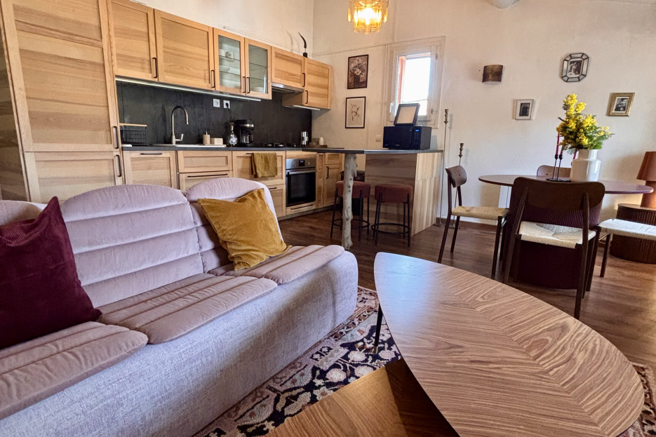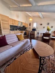 Au cœur du centre historique de L’Isle-sur-la-Sorgue, cet appartement en duplex vous plonge dans l’ambiance animée du village, à deux pas des marchés, des antiquaires et des restaurants.