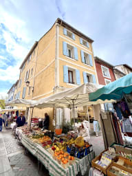 Cet appartement en duplex, situé au troisième étage sans ascenseur, se trouve en plein cœur de L’Isle-sur-la-Sorgue et offre de jolies vues sur la place du marché et les toits du centre historique.